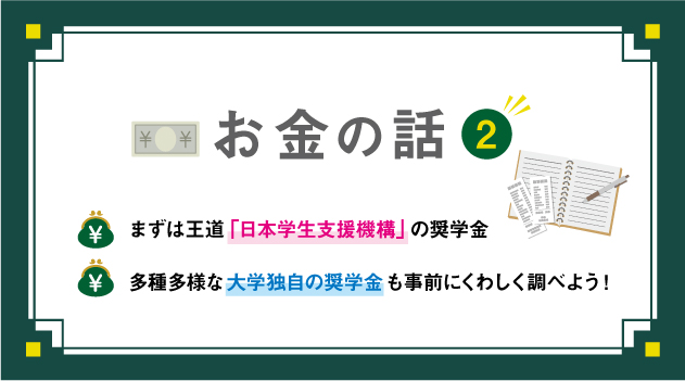 そんな若者の強い味方が「奨学金」です。各種奨学金を上手に利用して、大学生活を充実させましょう。