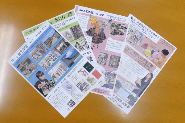 そんな影山さんは、中学・高校時代ともに美術部で部長を務め、リーダーシップをとりながら、自分の表現力を磨くことに注力していました。個人的な創作活動で終わらず、映像制作のコンクールや英語でプレゼン等を行うプログラムへの参加、土木学会での復興に関する発表、校内の各種イベント制作物を担当するなど積極的な活動は、総合型選抜を目指す以前から行っていたのです。これは、後に中学・高校時代の継続性のある実績・意欲として提出書類の中で生かされます。