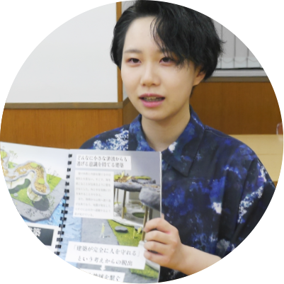 「東日本大震災が起こるまで、建築物が災害から守ってくれるという認識がありましたが、実際には避難できる家があるから大丈夫という安心感が命を奪ってしまった事例がありました。建築物を絶対視する考え方をなくしながら、防災と建築の関係性を見直したいと思ったのです。早稲田大学には建築分野でも幅広い専門をもつ先生が揃っています。建築工学や材料、意匠設計など多角的に学びながら自分の幅を広げられると思って志望しました」