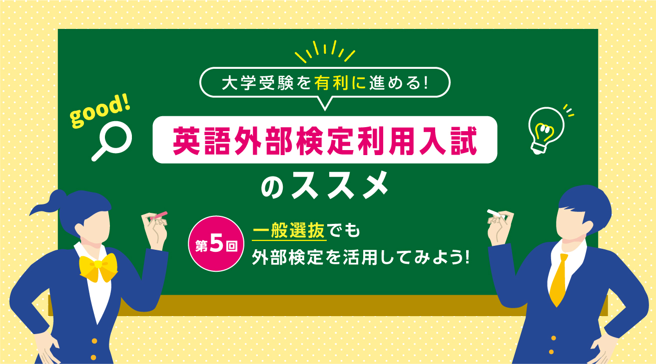 前回は、英検®について詳しくチェックしたほか、最近注目の検定にも触れました。この時期は、総合型選抜・学校推薦型選抜の準備が終わって、あとは出願と試験を受けるだけという人も多いのでは? でも、もしものことを考えて、今から一般選抜も準備しておいた方が安心です。今回は一般選抜について外部検定の活用も含めて詳しく見ていきましょう。